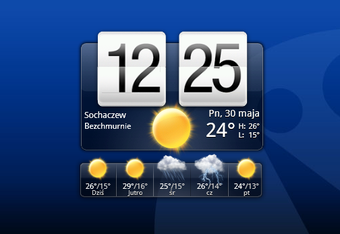 Darmowy HTC Home Portable to gadżet dla Windows XP, Vista i 7 prezentujący godzinę i prognozę pogody w stylu telefonów HTC. Bardzo atrakcyjny interfejs oraz dopracowane animacje przepływających chmur zadowolą zwolenników przystrajania pulpitu.